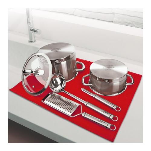 Ecco un accessorio utilissimo, salvaspazio e salva-cucina: il tappetino scola stoviglie è prodotto in microfibra, perfetto per lasciar scolare piatti, bicchieri e posate, proteggendo il piano del lavello o della cucina dai graffi e dagli urti quando si appoggiano le stoviglie appena lavate. Ha una superficie assorbente che cattura l'acqua in eccesso e permette a piatti e bicchieri di asciugare più in fretta. Quando non lo usi lo puoi arrotolare o ripiegare su se stesso, oppure lo puoi lasciare sul piano di lavoro.