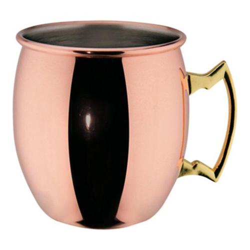 Tazza bombata moscow mule della linea mixage coppercon capienza di 40 cl, è realizzata in acciaio inox 18/10 placcato con un sottile strato di rame sulla superficie esterna. E' caratterizzata da un design dal gusto retrò e non è lavabile in lavastoviglie. La linea mixage è pensata appositamente per i professionisti del settore e comprende l’attrezzatura completa per realizzare cocktail.