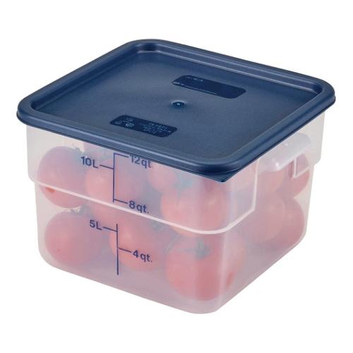 Coperchio per contenitore quadro realizzato in polipropilene; coperchia a scatto che si adatta saldamente, ma può essere facilmente rimosso; materiale traslucido che è sia durevole che resistente alle macchie; resiste a temperature da -40 a 71 °c