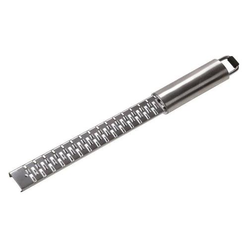 Grattugia da 33 cm con doppia lama fine micro-affilata della serie micro-thech realizzata in acciaio inox. La lama affilatissima grattugia gli alimenti in modo uniforme esaltandone il gusto, è ideale per grattugiare buccia di limone, noce moscata e formaggi. Lo speciale metodo di lavorazione, la microforatura, impedisce che le lame perdano l'affilatura e si intasino durante l'utilizzo. L'impugnatura è realizzata in polipropilene stampata ad iniezione e fornita di foro per appenderla.