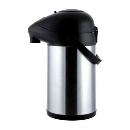Caraffa termica con erogatore a pressione realizzata in acciaio inox e abs dalla capacità di 2,5 litri, ideale per bevande calde e fredde. E' dotata di maniglia per un comodo trasporto, doppia parete in metallo e base girevole. Per riempire la caraffa aprire il coperchio sollevando la linguetta rossa, dopo il riempimento chiudere il coperchio. Per erogare la bevanda sbloccare il tasto di sicurezza e premere lo stantuffo ripetutamente, dopo l'utilizzo bloccare il tasto di sicurezza. La parte superiore del coperchio è rimovibile per agevolare le operazioni di pulizia, per estrarla aprirla e premere sul tasto.