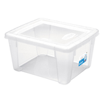 Contenitore multiuso con chiusura a scatto, pratico e maneggevole. Idoneo al contatto alimentare.