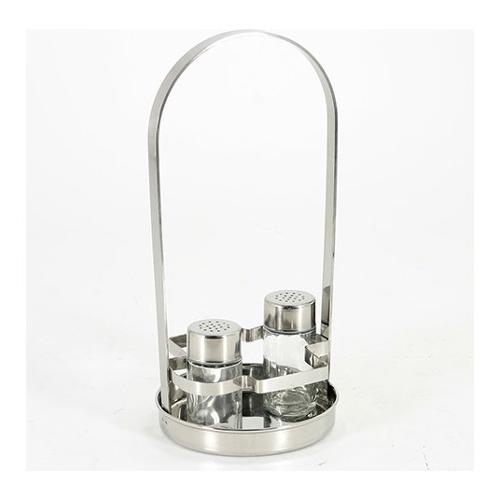 Stand olio e aceto in acciaio inox per bottiglie quadrate dalla capacità di 25 cl con sale e pepe dal diametro di 12 cm. Pratico e utilissimo, è completo di ampolle per il sale e il pepe e adatto per bottiglie quadre da 25 cl (non incluse).