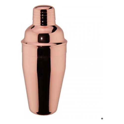 Cocktail shaker della linea mixage copper realizzato in acciaio inox 18/10 e placcato in rame dalla capacità di 50 cl. É uno degli strumenti più diffusi e amati dai professionisti. Questo shaker è composto da tre parti in acciaio inox ed è preferito soprattutto per cocktail composti da un’ampia base alcolica. Delle tre parti che lo compongono quella inferiore rappresenta il contenitore per gli ingredienti; la parte superiore è, invece, formata da un tappo traforato che funge da filtro, noto come “cupola”, e dal coperchio, definito anche “cappello”, che viene posto sopra il filtro. Dopo lo scuotimento è possibile versare il cocktail semplicemente aprendo il coperchio in quanto la cupola funge da colino. La linea mixage è pensata appositamente per i professionisti del settore e comprende l’attrezzatura completa per realizzare cocktail. Tutti gli shaker della linea sono caratterizzati da un design dal gusto retrò.