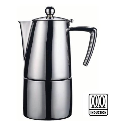 Caffettiera espresso in acciaio inox 18/10 con finitura satinata dotata di fondo per induzione. La caffettiera slancio è caratterizzata da forme eleganti e moderne, ha un'impugnatura ergonomica ed il becco rompigoccia che permette di versare con precisione il caffè. Il manico ed il coperchio sono atermici ed i ricambi sono della misura universale.