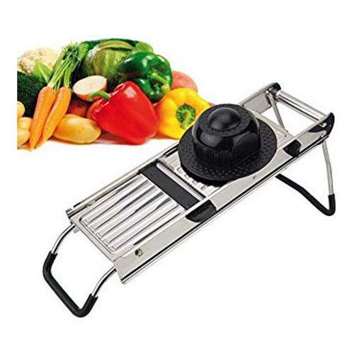 Mandolina affettaverdure di cm 40x14 in acciaio inox 18/10 con 5 lame intercambiabili e supporto di sicurezza proteggi-dita. Le lame possono essere utilizzate singolarmente o in combinazione tra di esse per affettare la verdura e la frutta in modi e spessori differenti: tagli julienne, taglio waffle (taglio a cialda) e taglio crinkle (taglio ondulato). Le gambe sono ripiegabili con inserti antiscivolo, le 5 lame hanno parti in polipropilene contenute in una pratica custodia dotata di supporto di sicurezza proteggi-dita per contenere le verdure e la frutta durante il taglio. Le lame incluse sono le seguenti: una lama a filo diritto per affettare, una lama a filo ondulato per il taglio crinkle (taglio ondulato) e per il taglio waffle (taglio cialda), tre lame per il taglio julienne: lama small con 21 lame (4mm), lama medium con 14 lame (larghezza 6 mm) e lama large con 10 lame (larghezza 10 mm). E' possibile regolare lo spessore del taglio con le diverse lame.