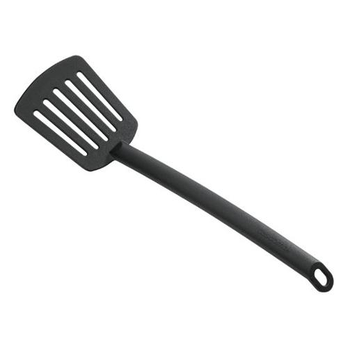 Paletta forata in nylon, particolarmente indicato per pentolame con rivestimento antiaderente poiché non ne danneggia la superficie. L'utensile è immune all'attacco degli acidi, non assorbe né odori nè colori degli alimenti. Resistente al calore fino a 210 °c.