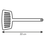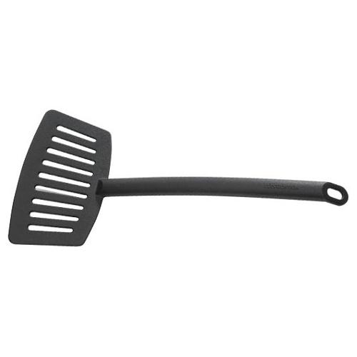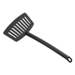 Paletta larga in nylon, particolarmente indicato per pentolame con rivestimento antiaderente poiché non ne danneggia la superficie. L'utensile è immune all'attacco degli acidi, non assorbe né odori né colori degli alimenti. Resistente al calore 210 °c.