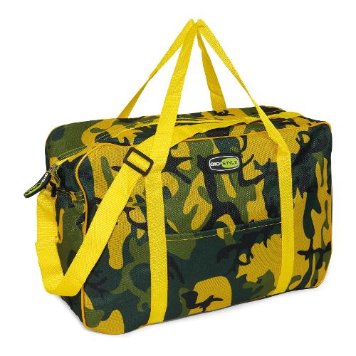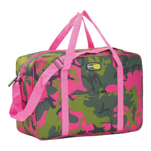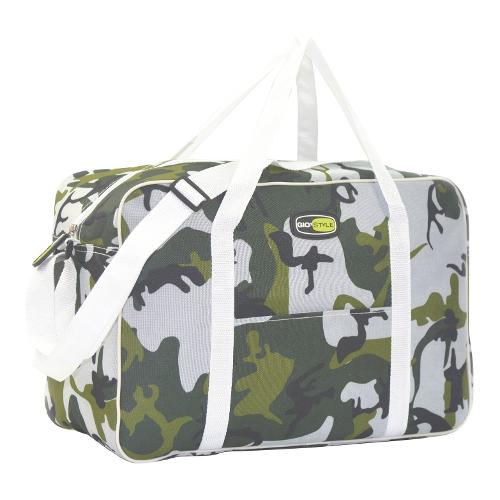 Dotata di tracolla regolabile e manici offrendo comodità nel trasporto. Dispone una tasca aperta frontale per riporre piccoli oggetti. Stampa con motivo mimetico, senza tempo ed adattabile a qualsiasi esigenza.