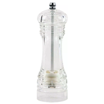 Macinapepe/macinasale in acrilico con macina in ceramica ed altezza di 15 cm. Realizzato in acrilico trasparente, possiede una lama che si deteriora difficilmente e permette un'elevata qualità di macinatura dei grani di pepe e di sale, liberandone tutto l'aroma. Inoltre, vista l'assenza di metallo, non esiste nessuna possibilità che il meccanismo arrugginisca con i conseguenti odori sgradevoli, garantendo così un aroma ed un sapore sempre fresco del pepe e del sale. Avvitando il pomolo posto sulla parte superiore, si può graduare la macinatura, ottenendo una grana più o meno fine a seconda dei gusti. Per mantenere in efficienza il macinapepe/sale si sconsiglia di lavarlo con acqua o in lavastoviglie, ma di tenerlo sempre al riparo dall'umidità e pulirlo esclusivamente con panni asciutti. Se il macinapepe/sale è vuoto si raccomanda di evitare di macinare poiché la macina potrebbe danneggiarsi.