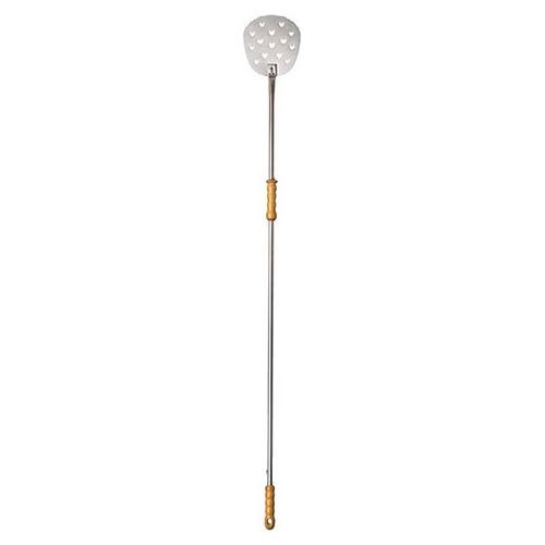Realizzata in titanio, questa pala è leggera e resistente. Il piatto pala semiovale consente di raggiungere agevolmente la pizza, anche quando ce ne sono diverse nel forno, inserendo quindi il piatto pala con la punta senza toccare quella vicino.