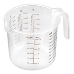 Pratico contenitore dosatore con scala misuratrice sui lati per: zucchero, zucchero a velo e farina in gr. e per liquidi in l. Prodotto in plastica resistente e semitrasparente, dotato di beccuccio versatore e impugnatura ergonomica.