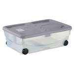 Contenitore multiuso con fusto semitrasparente e con coperchio a doppia apertura, completo di taschine antitarme. Pratico e maneggevole è ideale per riorganizzare tutti i tipi di ambiente.