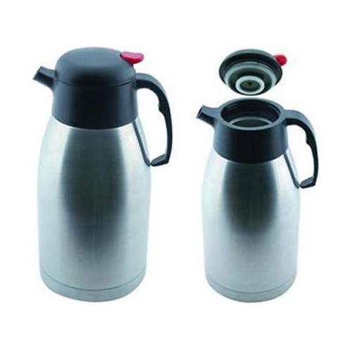 Caraffa termica dalla capacità di 2 litri dotata di guarnizioni e pratico pulsante versatore, con corpo in acciaio inox 18/10 e parte superiore in abs. Dotata di impugnatura ergonomica e coperchio versatore con guarnizione di sicurezza.