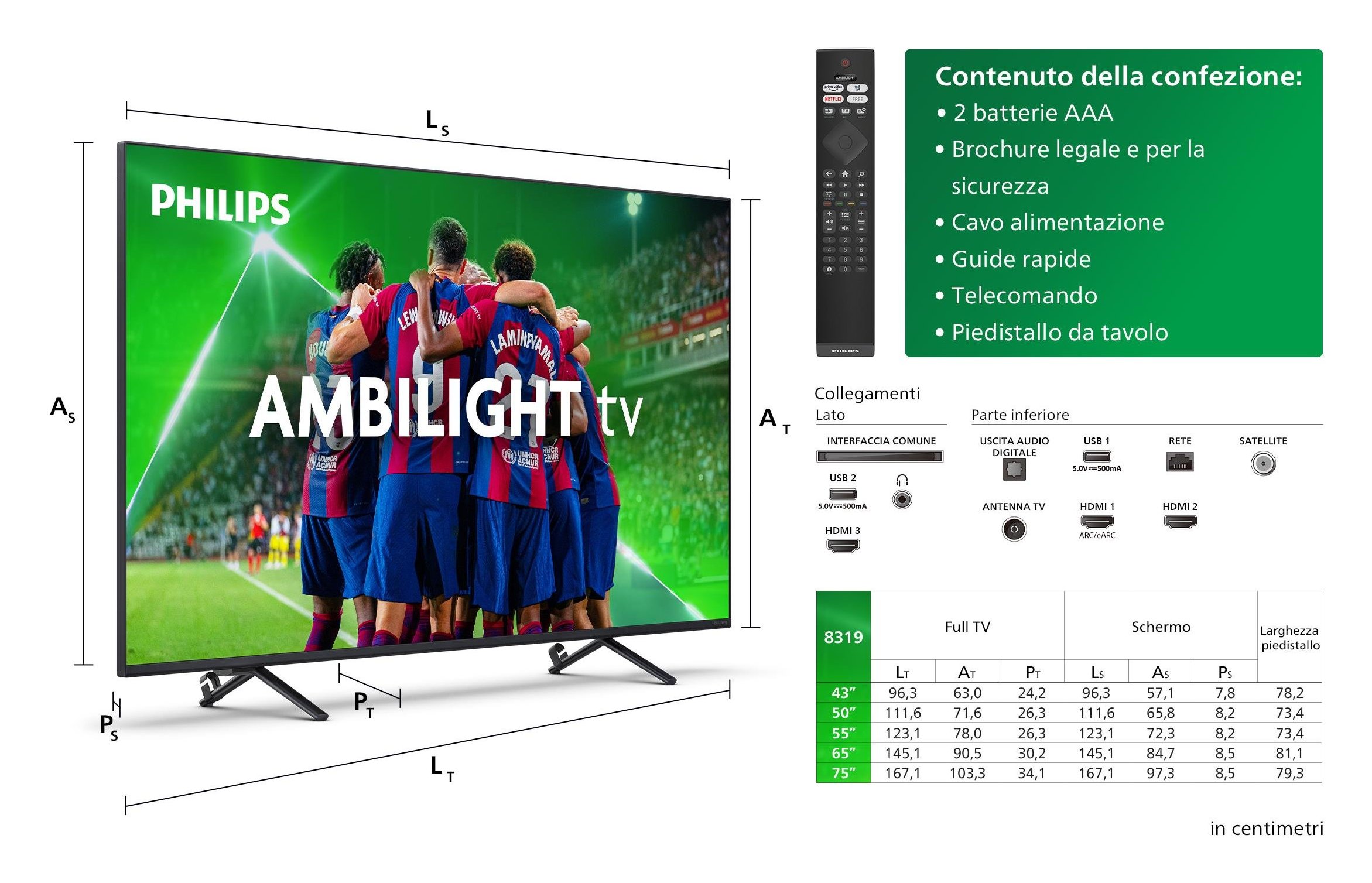 Tv 43" ( LED ) Titan OS AMBILIGHT Black 43PUS8319 12