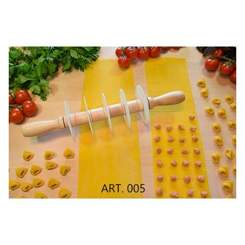 Il mattarello tagliasfoglia regolabile è predisposto per tagliare ben 7 larghezze di pasta diverse (5.5/11/16.5/27.5/33/38.5/55 mm) è composto da due manici di legno, 5 lame e 12 distanziali di differenti misure componibili tra loro per creare la misura più adatta a voi. Nella confezione sono comprese 2 chiavi per la regolazione e istruzioni illustrate. Se la pasta risulta troppo umida potrebbe trascinarsi durante il taglio, per aggirare il problema sporcate leggermente le lame di farina.