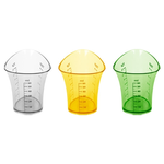 Il misurino graduato in plastica colorata resistente è perfetto per piccole quantità di liquidi. Con tre unità di misura: cucchiai (tbsp), cucchiaini (tsp) o ml.