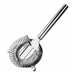 Passino da bar in acciaio inox 18/10 della lunghezza di 19,5 cm. Lo strainer, definito anche come passino o colino cocktail, è uno strumento dotato di fori che permettono il solo passaggio del liquido nel bicchiere, impedendo al ghiaccio o ad altri ingredienti di cadere nel drink miscelato.