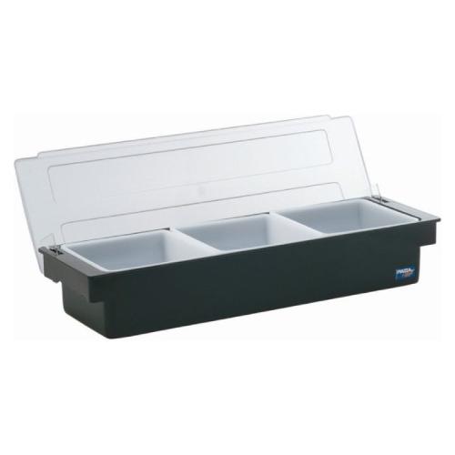 Portacondimenti della linea mixage in abs-pp-pc con misure 50x16 cm e altezza 10 cm. La struttura in abs è completa di coperchio in plastica e bacinelle portacondimenti di facile estrazione. É uno strumento pratico e igienico da utilizzare dietro il bancone di un bar. La linea mixage è pensata appositamente per i professionisti del settore e comprende l’attrezzatura completa per realizzare cocktail.
