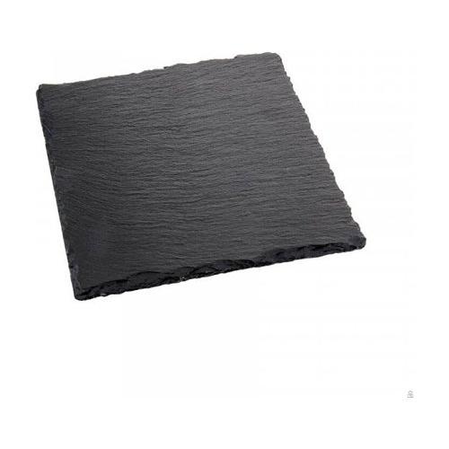 Piano quadrato in ardesia naturale perfetto per un servizio moderno di tendenza ed ideale per aperitivi sfiziosi. La nuova linea di piani realizzati in ardesia naturale è caratterizzata dai bordi frastagliati che mettono in evidenza la naturale struttura della pietra. L'ardesia (detta anche pietra di lavagna) è una particolare varietà di roccia metamorfica allotigena di origine sedimentaria, facilmente divisibili in lastre sottili, piane e leggere. La superficie di ciascun piano è trattata con un rivestimento impermeabile, idoneo al contatto con gli alimenti. I piedini antiscivolo applicati sulla parte posteriore garantiscono la stabilità su qualsiasi superficie.