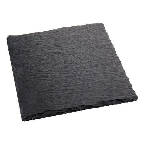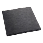Piano quadrato in ardesia naturale perfetto per un servizio moderno di tendenza ed ideale per aperitivi sfiziosi. La nuova linea di piani realizzati in ardesia naturale è caratterizzata dai bordi frastagliati che mettono in evidenza la naturale struttura della pietra. L'ardesia (detta anche pietra di lavagna) è una particolare varietà di roccia metamorfica allotigena di origine sedimentaria, facilmente divisibili in lastre sottili, piane e leggere. La superficie di ciascun piano è trattata con un rivestimento impermeabile, idoneo al contatto con gli alimenti. I piedini antiscivolo applicati sulla parte posteriore garantiscono la stabilità su qualsiasi superficie.