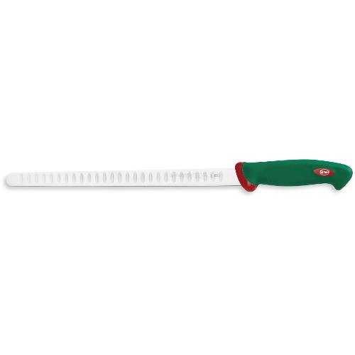 Coltello a lama flessibile e olivata per facilitare il distacco della fetta. Ideale per salmone affumicato.