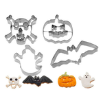 Set stampi per biscotti halloween, in acciaio inossidabile, 4 pezzi assortiti nelle forme zucca, pipistrello, teschio e fantasma.