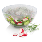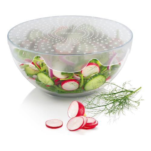 Questi geniali coperchi permettono di chiudere ciotole e contenitori tondi, aderendo perfettamente e conservando igienicamente il contenuto. Sono prodotti in silicone, sono estensibili e rendono ermetiche le ciotole. Sono salvaspazio, li puoi riporre distesi o arrotolati, vanno in frigorifero e si possono lavare in lavastoviglie.