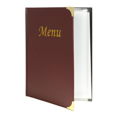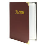 Porta menù in pvc, con scritta "menu" in oro stampata sulla