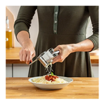 Divertiti a grattugiare il formaggio e il cioccolato grazie alla grattugia mouli-grater. Il suo design in acciaio inox permette un uso a lunga durata e il lavaggio in lavastoviglie. Il manico adattabile garantisce un totale comfort nel suo utilizzo sia con la mano destra sia con la mano sinistra.