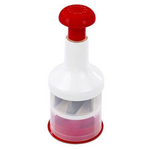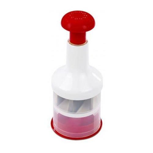 Per tritare cipolle, carote, aglio, prezzemolo, pomodori, frutta secca sgusciata, carne cotta, ecc. Ottimo sostituto della “mezzaluna”. Tutto il trito resta all’interno dell’apposito contenitore evitando la lacrimazione degli occhi quando si trita la cipolla. Con rotazione della lama in modo automatico ad ogni battuta. Facilmente smontabile