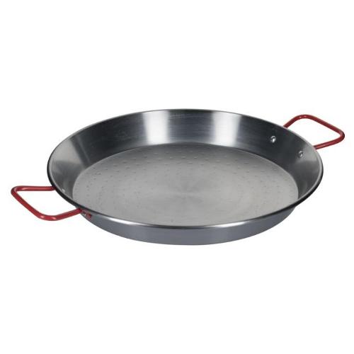 Paella valenciana in ferro smaltato della linea la ideal garcima. La versione smaltata delle paellere garcima presenta una texture con effetto pietra molto moderna, che rende gli articoli pratici nell'utilizzo quotidiano e nella manutenzione, oltre che utilizzabili in forno. Le paellere garcima in prevalenza sono realizzate in ferro, un metallo dalle caratteristiche ideali per garantire la temperatura costante durante la cottura della paella velenciana. Oltre che per la preparazione di quest'ultima, sono indicate per la realizzazione di soutè di cozze, impepate, cottura della carne a bocconcini, del pesce e delle verdure o per realizzare croccanti fritture. infatti il tipo di metallo con cui sono realizzate ha la caratteristica di mantenere la temperatura costante durante la cottura, consentendo la formazione della 'crosticina'