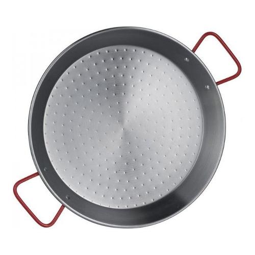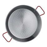 Paella valenciana in ferro spazzolato della linea la ideal garcima dal diametro di 32 cm. Garcima è una nota azienda spagnola con sede alacuas (valencia) che produce sin dal 1940 le paellere caratterizzate dal particolare fondo che garantisce la cottura delicata e uniforme dell'originale paella valenciana. Le paellere garcima in prevalenza sono realizzate in ferro, un metallo dalle caratteristiche ideali per garantire la temperatura costante durante la cottura della paella velenciana. Oltre che per la preparazione di quest'ultima, sono indicate per la realizzazione di soutè di cozze, impepate, cottura della carne a bocconcini, del pesce e delle verdure o per realizzare croccanti fritture. Il tipo di metallo con cui sono realizzate ha la caratteristica di mantenere la temperatura costante durante la cottura, consentendo la formazione della 'crosticina'.