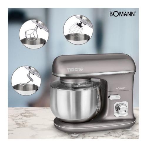 Bomann KM 6010 CB. Capacità ciotola: 5 L, Colore del prodotto: Titanio, Tipo di controllo: Manopola. Materiale ciotola: Acciaio inossidabile. Potenza: 1100 W, Tensione di ingresso AC: 220 - 240 V, Frequenza di ingresso AC: 50 / 60 Hz. Peso: 3,85 kg
