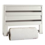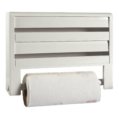 Porta 3 rotoli con rotolo carta incluso. Cambio rotolo semplice e pratico strappo facile. Ideale per carta, alluminio, pellicola, carta forno