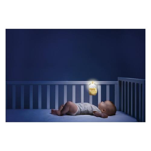 Il primo innovativo sonaglio elettronico 2in1 con due modalità: intrattiene i bambini di giorno e si trasforma in luce notturna per il riposo del bambino. Modalità giorno: premendo il pulsante centrale inizieranno a suonare allegre melodie e luci lampeggianti Modalità notte: una volta inserito nel morbido sacco a pelo, premendo il pulsante centrale inizierà a suonare melodie rilassanti insieme a luci soffuse. 3 batterie lr44 incluse