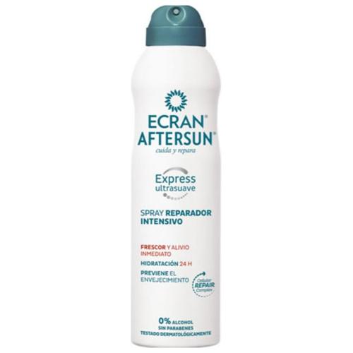 Aftersun spray riparatore intensivo di ecran. Uno spray doposole riparatore che aiuta a rinfrescare e idratare la pelle dopo l'esposizione al sole. La sua formula leggera e di rapido assorbimento dona alla nostra pelle una texture ultra morbida, favorendone la completa rigenerazione dopo possibili danni solari, come irritazioni, scottature e allergie. Non contiene alcool né parabeni.