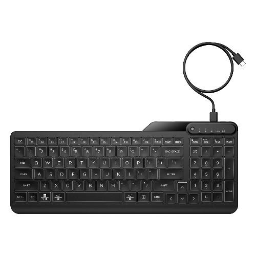 Lavora e gioca tutto il giorno sulla tastiera cablata retroilluminata HP 405, sottile e disinfettabile