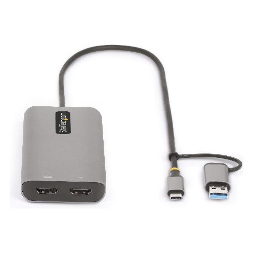 Questo adattatore multiporta USB Type-C e USB Type-A trasforma quasi tutti i computer portatili o desktop in una workstation ad alta produttività, che supporta due schermi HDMI esterni e dispone di un hub USB a 3 porte. Il Mini Dock è dotato di un cavo host USB-C integrato di 40 cm e include un adattatore USB-C a USB-A collegato, in modo da poter supportare sia computer host USB-C che USB-A.