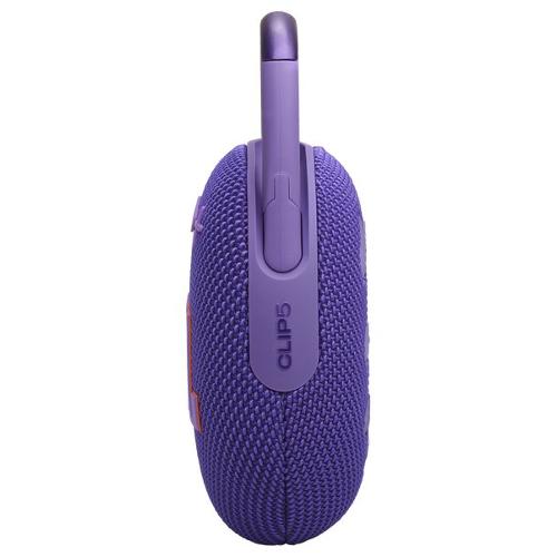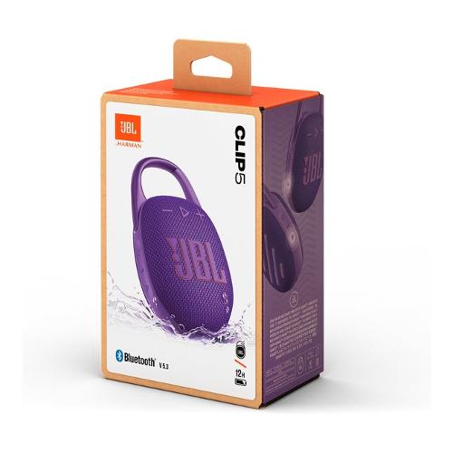 Il diffusore Bluetooth ultraportatile JBL Clip 5 è abbastanza piccolo da poter essere tenuto in una mano, ma non lasciarti ingannare dalle sue dimensioni: quando suona è grandioso! Il moschettone, largo e totalmente integrato, è grande abbastanza da poter essere agganciato praticamente a tutto.