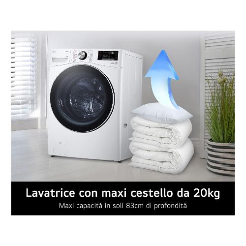 F0P3020TSWC Lavatrice capacità XL 20kg AI DD™ Serie P3, Classe B, 1000 giri, TurboWash 360, Vapore, Wi-Fi, White