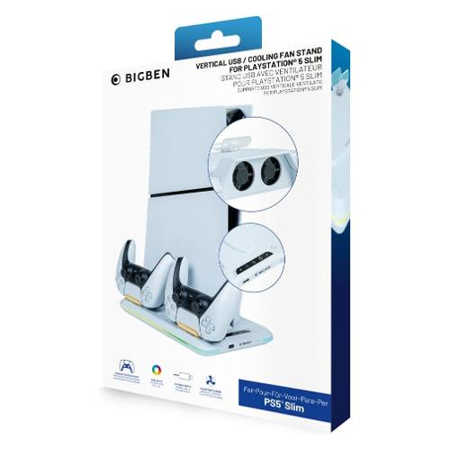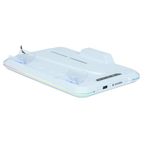 Stazione di ricarica per due controller DualSense, 2 ventole di raffreddamento regolabili per console. 14 effetti luminosi RGB regolabili.
