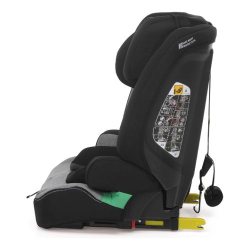 Ha doppia omologazione di aggancio dual fix con o senza isofix (da 100 a 150 cm di altezza): si utilizza posizionato nel senso di marcia per bambini da 76 cm di altezza e 15 mesi di età.