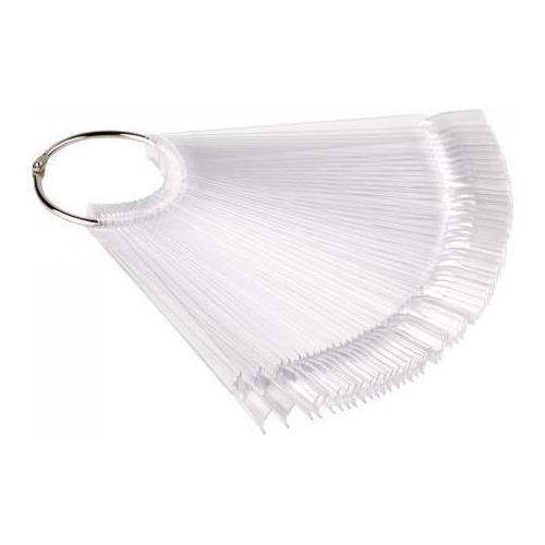 Realizzato in plastica resistente di colore trasparente e con pratico anello in metallo che consente di sfogliare i singoli display facilmente e velocemente. Espositore per unghie con anello da 50 pz. Ideale per l’esposizione di gel polish, smalti colorati e nail art o per prove colore.