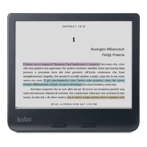 Ti presentiamo il nostro eReader più creativo fino ad ora: il nuovo Kobo Libra Colour. Anima le tue note a margine, dai forma ai tuoi pensieri e sottolinea le frasi più suggestive, tutto a colori. Grazie alla compatibilità con Kobo Stylus, puoi immergerti ancora più profondamente nelle pagine dei tuoi testi preferiti, annotando i contenuti salienti e sottolineando i passaggi più intensi dei tuoi eBook.