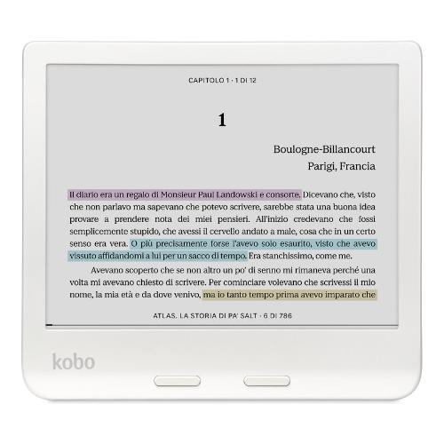 Ti presentiamo il nostro eReader più creativo fino ad ora: il nuovo Kobo Libra Colour. Anima le tue note a margine, dai forma ai tuoi pensieri e sottolinea le frasi più suggestive, tutto a colori. Grazie alla compatibilità con Kobo Stylus, puoi immergerti ancora più profondamente nelle pagine dei tuoi testi preferiti, annotando i contenuti salienti e sottolineando i passaggi più intensi dei tuoi eBook.