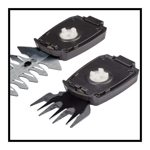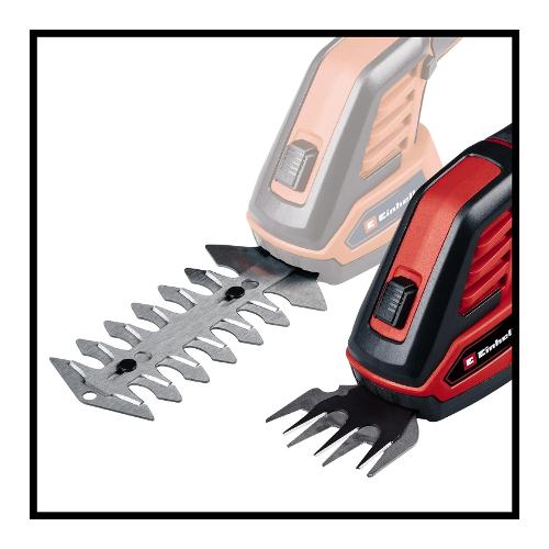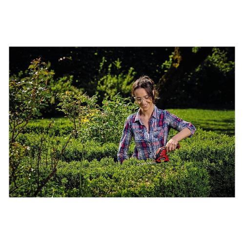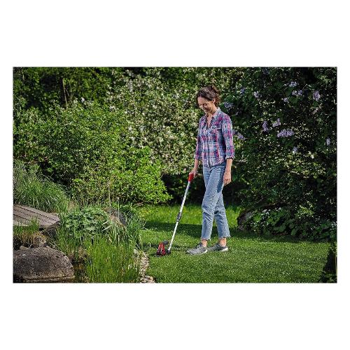 Le forbici per erba e cespugli a batteria einhell gc-cg 3,6/70 li sono un aiuto affidabile per un taglio preciso e confortevole nel giardino di casa. Le forbici a batteria sono adatte a tutti i giardinieri amatoriali che non vogliono solo tagliare l'erba, ma anche tagliare i rami. È una comoda alternativa alle seghe a mano o alle forbici da giardino. Prima di tutto, le forbici per cespugli ed erba alimentate a batteria sono più leggere, più silenziose e offrono una maggiore flessibilità rispetto ai dispositivi a benzina o elettrici, rendendole lo strumento ideale per tagliare e modellare cespugli e arbusti. La scatola del cambio coperta protegge dal contatto con l'olio del cambio, il cambio lama è semplice e completamente senza attrezzi. Grazie alla larghezza di taglio di 70 mm, la lama tagliaerba è perfetta per la cura dei bordi del prato. La lama tagliasiepi taglia rami e rametti fino a 8 mm di spessore ed è particolarmente adatta per la cura di siepi e cespugli garzie alla lunghezza di taglio di 110 mm. Il softgrip offre una presa perfetta e sicura e la prolunga telescopica in dotazione garantisce un'applicazione particolarmente ergonomica. La batteria da 2,0 ah è fissa. Un cavo di ricarica per ricaricare le forbici per erba e cespugli a batteria è incluso.