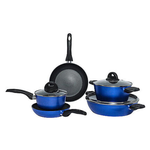 Composizione: 1 casseruola 16cm con 1manico + coperchio, 1 casseruola 20 cm con 2 manici, 1 tegame 28cm + coperchio, 1 padella + coperchio da 20cm, 1 padella da 24cm.