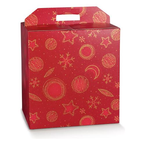 La classica scatola per le strenne natalizie con maniglia. Nei vari formati può contenere un panettone da 750gr. + bottiglie oppure prodotti enogastronomici vari. Peso max 3,5 kg.