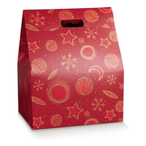 Scatola in cartone accoppiato con maniglia. Può contenere 1 panettone da 750gr./1kg + bottiglia oppure prodotti enogastronomici vari. Peso raccomandato: 3,5/7kg.